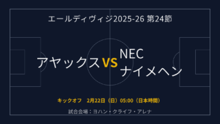 エールディヴィジ2025-26第25節の試合日程・結果や配信情報を紹介するとともに、日本人選手の注目ポイントや試合の見どころを整理します。