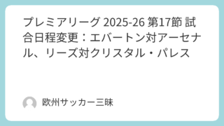 プレミアリーグ2025-26 第28節は、2月28日~行なわれます。プレミアリーグ2025-26 第28節 試合日程※日程は変更される場合があります試合日時対戦カード2月28日(土) 5:00ウォルヴァーハンプトン VS アストン・ヴィラ2...