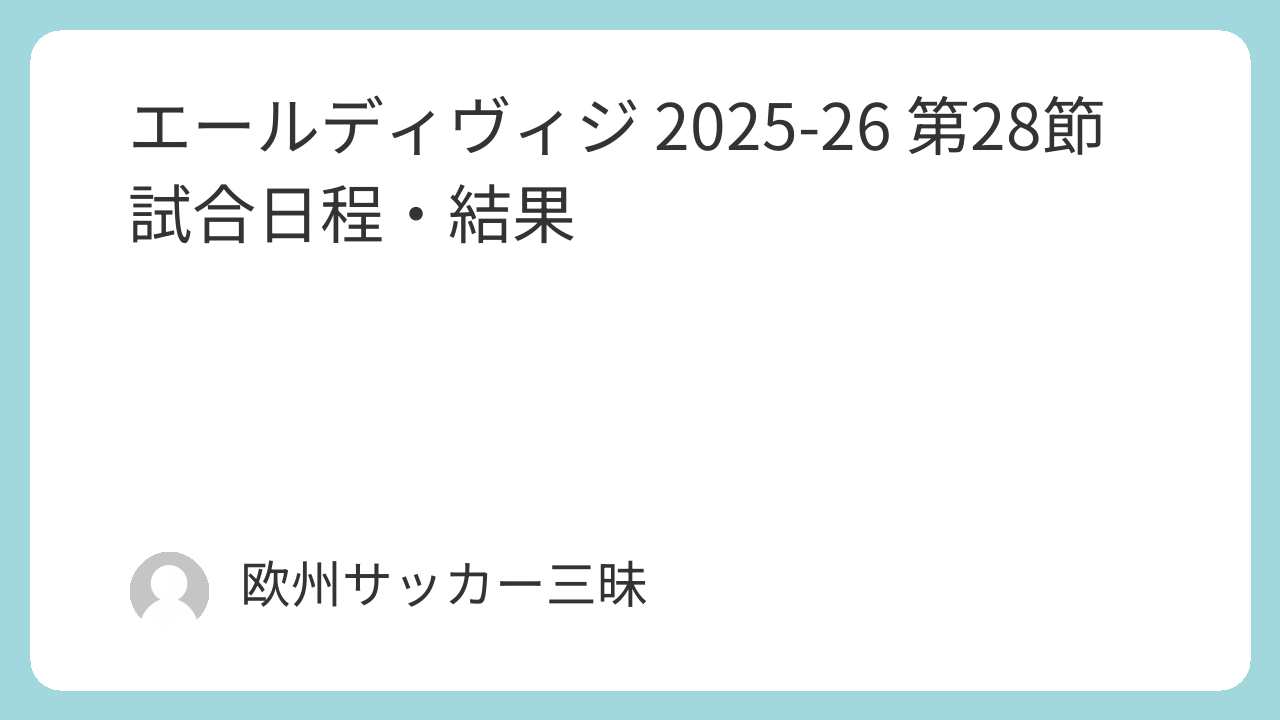 エールディヴィジ2025-26シーズン第28節は、2026年3月21日(土)~3月23日(月)に行なわれます。