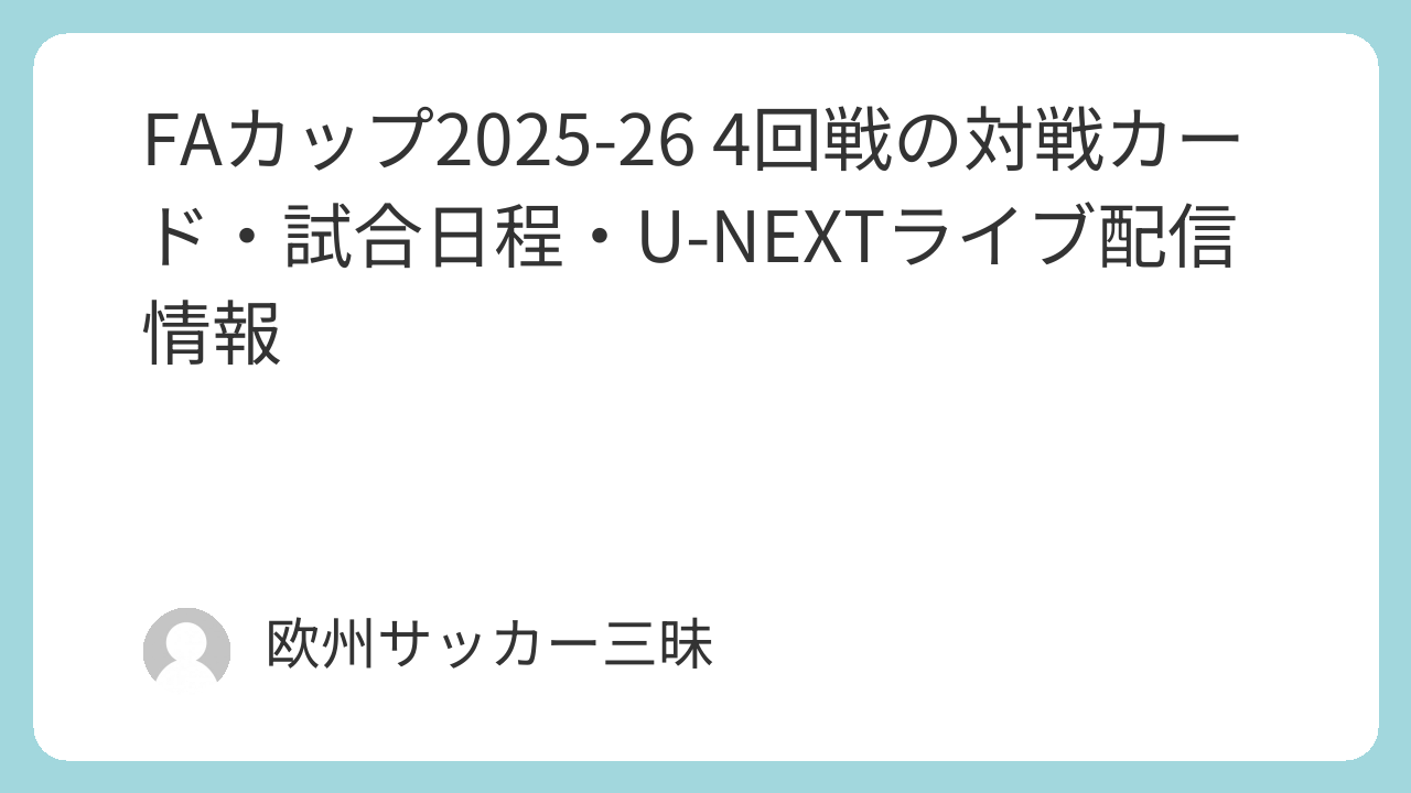 FAカップ2025-26 4回戦の対戦カード・試合日程・U-NEXTライブ配信情報