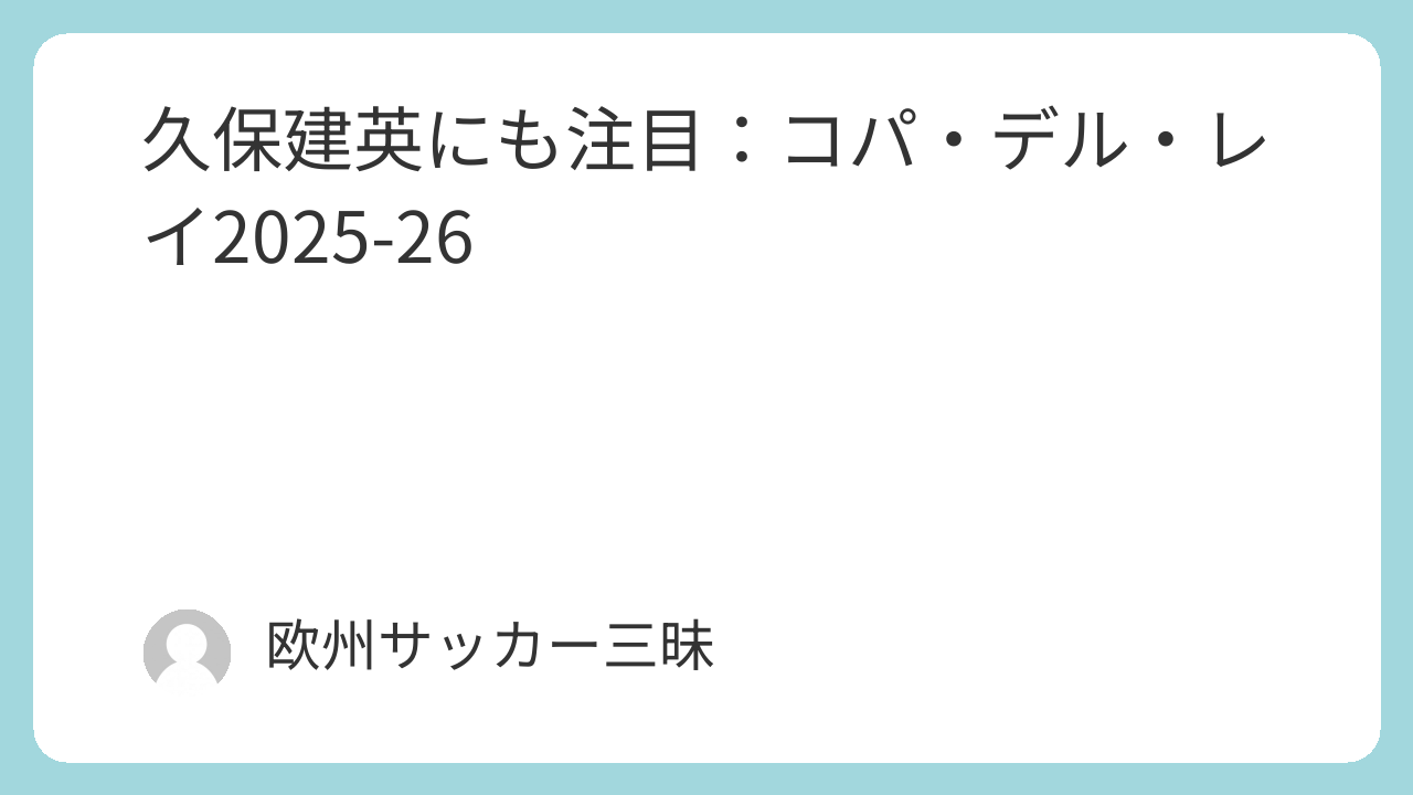 久保建英にも注目:コパ・デル・レイ2025-26