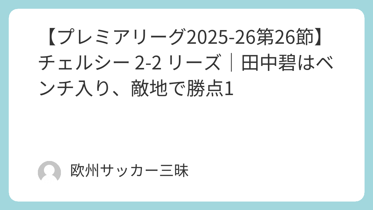 【プレミアリーグ2025-26第26節】チェルシー 2-2 リーズ|田中碧はベンチ入り、敵地で勝点1