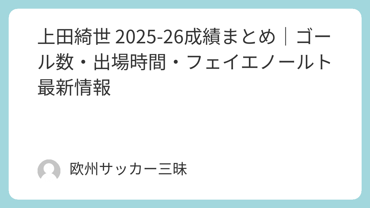 フェイエノールト所属・上田綺世の2025-26シーズン成績を掲載。